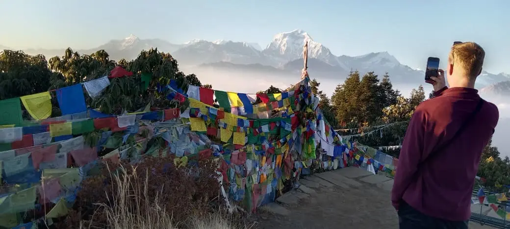 One of the most memorable moments of the trek is the early morning hike to Poon Hill (3,210m). From the top, trekkers witness a magical sunrise over the Annapurna and Dhaulagiri ranges, with golden light illuminating snow-capped peaks. This viewpoint is considered one of the best panoramic spots in Nepal.