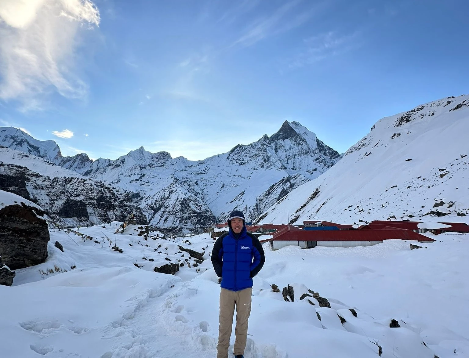 The trek reaches its peak as you make your way to Annapurna Base Camp (ABC). Along the way, you will pass Machhapuchhre Base Camp, offering close-up views of the sacred Fishtail Mountain. Upon reaching ABC, you will be rewarded with a 360-degree panorama of majestic Himalayan peaks. One of the most magical experiences here is watching the sunset over the snow-covered mountains, creating an unforgettable atmosphere.