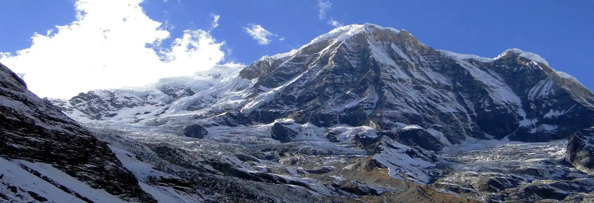 Annapurna North Base Camp is in a high desolate location with views over glaciers and soaring peaks.